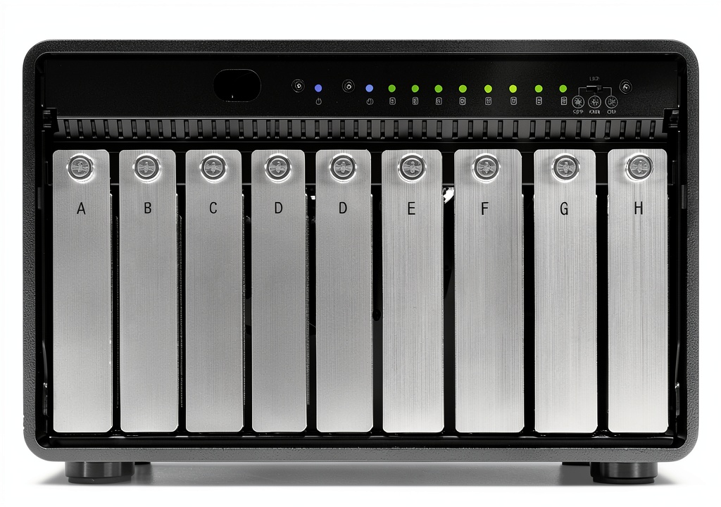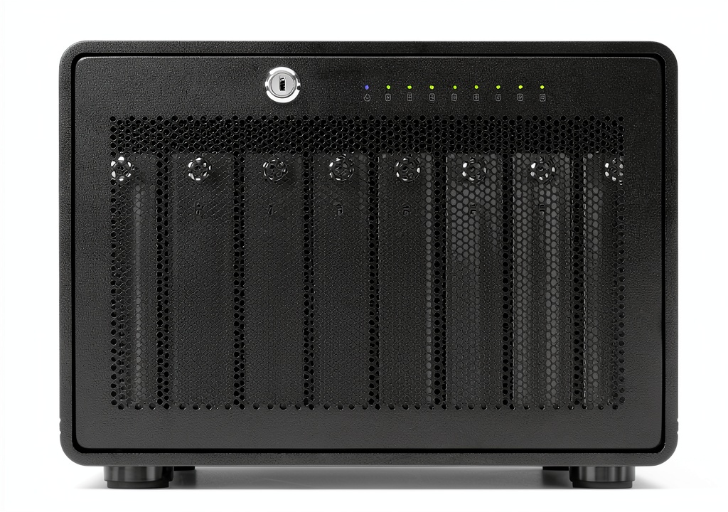 - Eight hot-swappable drive bays supporting both 2.5-inch and 3.5-inch SSDs or HDDs for versatile storage options.