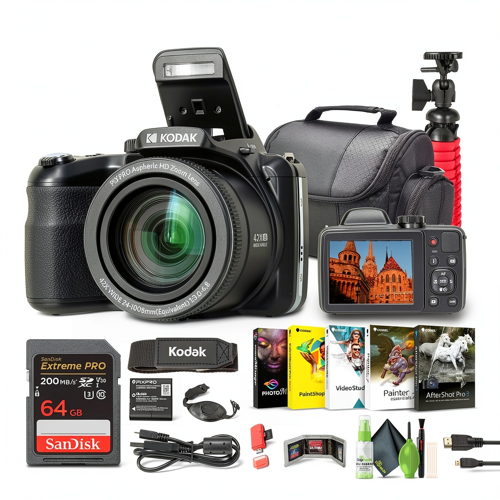 Kodak PIXPRO AZ425 stands out for its combination of advanced features and user-friendly design, backed by Kodak’s legacy in imaging technology. The 42x optical zoom and 20MP sensor provide professional-level performance without the complexity of larger systems, making it accessible for beginners yet powerful for enthusiasts. The included bundle adds exceptional value, offering everything needed to start shooting immediately, from storage to editing tools. We prioritize quality and durability, ensuring the camera withstands regular use while delivering consistent results. Our commitment to customer satisfaction includes reliable support and a focus on delivering products that enhance your creative expression.