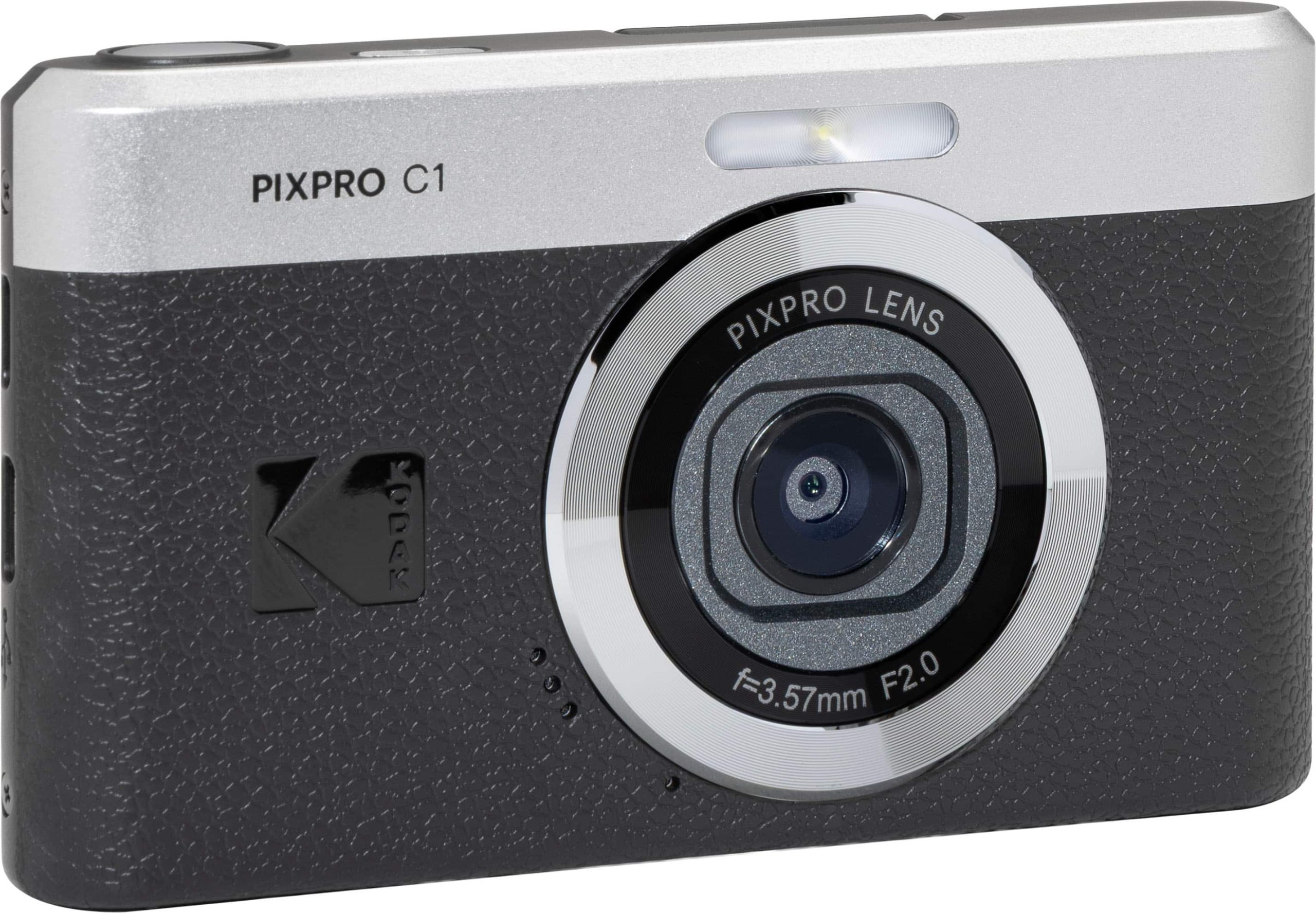The Kodak PIXPRO C1 digital camera is designed for photography enthusiasts seeking reliability and performance. It features a 13MP BSI CMOS sensor that enhances light sensitivity and low-light capabilities, ensuring sharp, vibrant images even in challenging conditions. The 26mm fixed focus wide-angle lens captures expansive scenes, making it ideal for landscapes, travel, and group photography. With a 2.8″ 180° flip-up LCD screen, taking selfies and framing shots is intuitive and effortless. The camera records 1080p HD video for detailed and clear footage, and its built-in Li-ion rechargeable battery offers convenient power management. Included accessories are a Type-C USB cable, AC adapter, wrist strap, and a 1-year warranty card, providing everything needed to start shooting immediately.